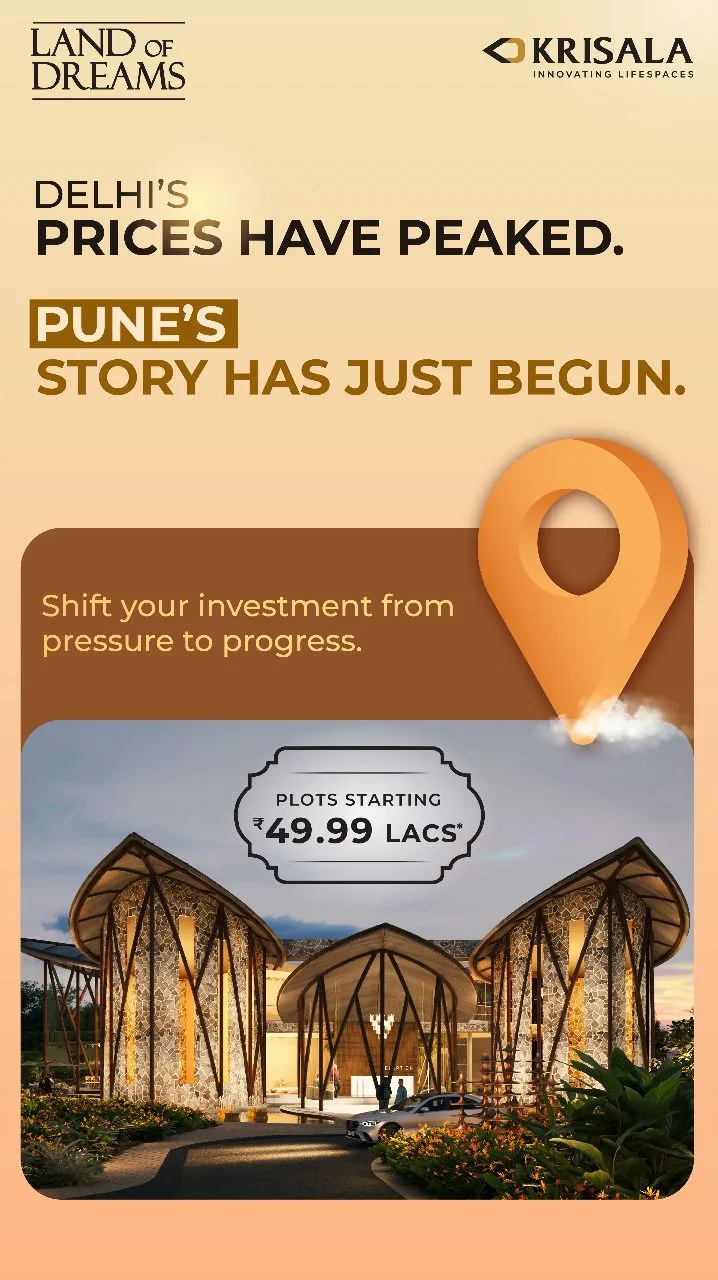 Krisala Lands of Dream is a landmark plotted community in Talegaon, Pune, envisioned as a serene, future-ready address within Codename Destination One. Designed for those who value nature, connectivity, and long-term growth, it brings together thoughtfully planned residential plots within a secured, well-laid township setting focused on green living and everyday convenience.Inspired by resort-style, Balinese aesthetics, the development features calm, landscaped avenues, Zen gardens, and abundant open spaces that nurture a relaxed, wellness-centric lifestyle. A modern clubhouse, curated lifestyle features, and community-centric zones ensure residents enjoy recreation, connection, and comfort in a premium environment.Strategically located just minutes from the Old Mumbai–Pune Highway and within easy reach of West Pune, the address offers excellent access to key work hubs, education, healthcare, and daily conveniences. Talegaon’s pleasant climate, green surroundings, and evolving infrastructure make it an appealing choice for both homeowners and discerning land investors.